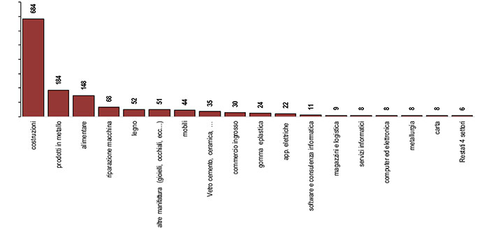 Nei settori in ripresa si addensa più della metà (53,5%) dell’occupazione dell’artigianato, interessando 1 milione e 399 mila addetti.