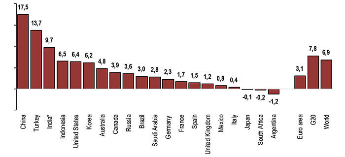 VARIAZIONE DEL PIL 2022 RISPETTO LIVELLI 2019 PRE-COVID NEI PAESI G20