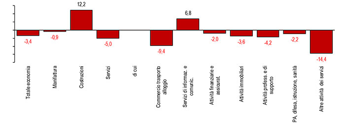 Var. % rispetto quarto trimestre 2019, dati destagionalizzati – Elaborazione Ufficio Studi Confartigianato su dati Istat