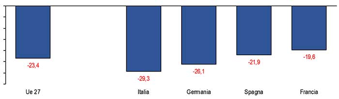 2021 (ultimi dodici mesi a novembre), var. % cumulata rispetto 2013 – Elaborazione Ufficio Studi Confartigianato su dati Eurostat