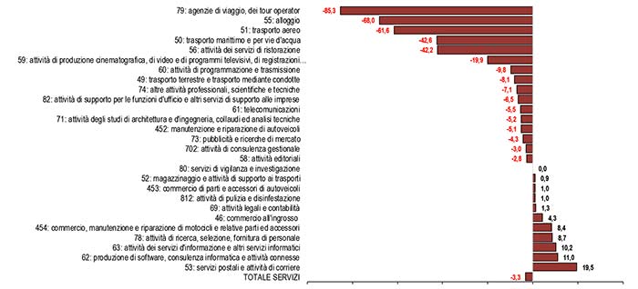 DINAMICA FATTURATO DEI SERVIZI RISPETTO LIVELLI PRE COVID-19 PER SETTORE