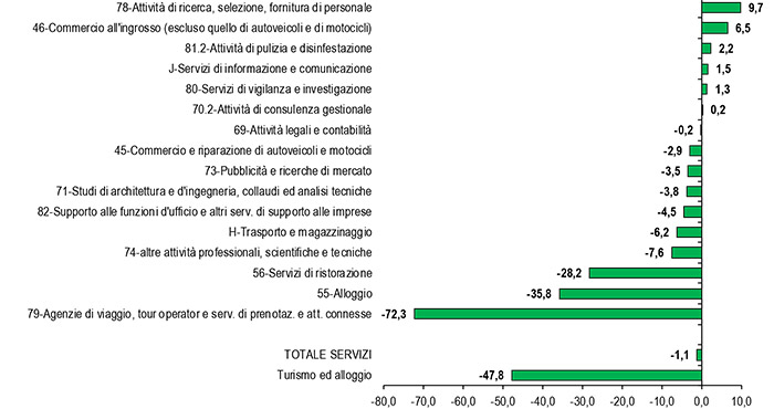 L’analisi dei dati dell’indagine dell’Istat sul fatturato dei servizi evidenzia che i settori che registrano un maggiore ritardo della ripresa – ristorazione, alloggio, servizi viaggio – sono quelli con la quota più elevata di imprenditoria femminile.