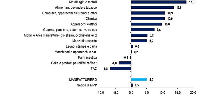 DINAMICA DELL'EXPORT MANIFATTURIERO PER SETTORI