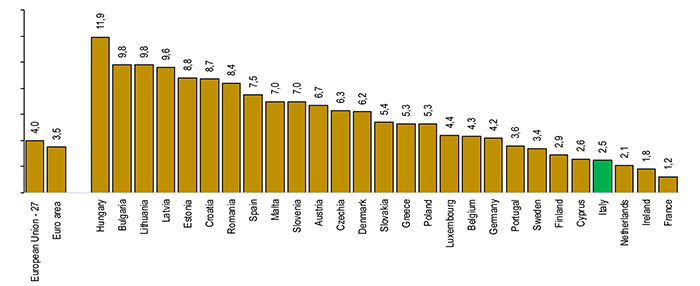 Le pasticcerie in Italia stanno assorbendo, in modo più accentuato rispetto agli paesi europei, la pressione dei prezzi delle materie prime e la maggiore spinta sui costi dell’energia, con ricadute contenute sui prezzi praticati alla clientela. Dall’esame dell’indice dei prezzi degli Altri prodotti di panetteria e pasticceria– la voce che comprende i prodotti di pasticceria freschi – emerge che a febbraio 2022 l’Italia segna un aumento dei prezzi che si ferma al 2,5%, in linea con la dinamica dei prezzi no energy (+2,3%). Nel confronto internazionale, la dinamica dei prezzi di riferimento della pasticceria fresca in Italia è più moderata del +3,5% dell’Eurozona e del +4,0% dell’Ue a 27, risultando meno accentuata rispetto altri 23 paesi dell’Unione europea a 27, e in particolare rispetto al +7,5% della Spagna e del +4,2% della Germania; fa meglio dell’Italia la Francia (+1,2%), anche grazie al minore aumento dei prezzi dell’energia elettrica, favorito dall’elevata quota di produzione di elettricità con il nucleare.