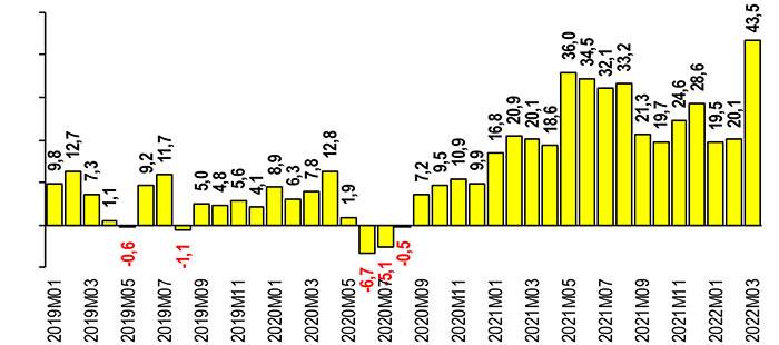 Gennaio 2019-marzo 2022, quotazioni in euro, variazione percentuale tendenziale – Elaborazione Ufficio Studi Confartigianato su dati Banca Mondiale e Bce