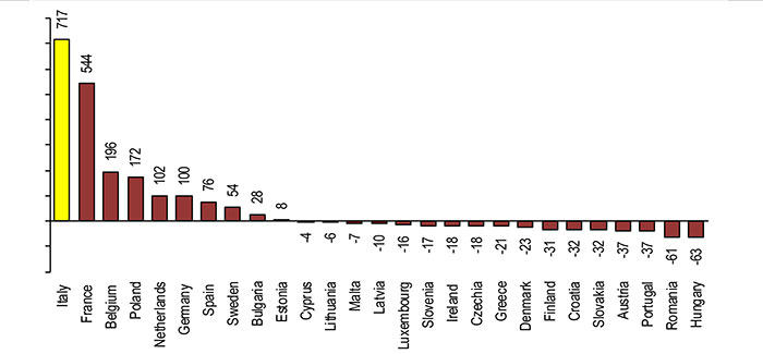 Il made in Italy dei dolci da ricorrenza leader in Europa – L’Italia è il primo paese europeo per saldo del commercio estero di dolci da ricorrenza, pari a 717 milioni di euro nel 2021, combinazione di 867 milioni di euro di esportazioni e di un import di 150 milioni di euro. Il nostro Paese si posiziona davanti alla Francia con 544 milioni di euro, mentre seguono, a distanza, il Belgio con 196 milioni, la Polonia con 172 milioni, i Paesi Bassi con 102 milioni, la Germania con 100 milioni e la Spagna con 76 milioni.