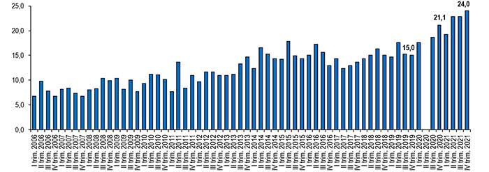 I trimestre 2006 -IV trimestre 2021. %, certamente sì e probabilmente sì – Elaborazione Ufficio Studi Confartigianato su dati Istat