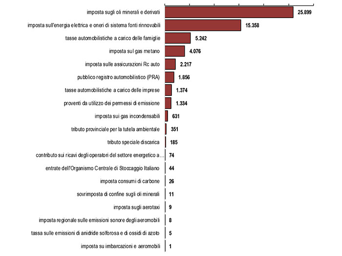In Italia l’80,8% dei 58,7 miliardi di euro di tassazione ambientale si riferisce all’energia, con il 44,1% del gettito che deriva da accise su oli minerali e il 26,2% da imposte su energia elettrica e oneri di sistema per le fonti rinnovabili. Il report ‘Economia e ambiente’ recentemente pubblicato dall’Istat evidenzia che la quota di gettito ambientale corrisposto dalle attività economiche è salito dal 38% del 2008 al 44% nel 2018.