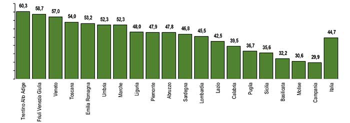 In chiave territoriale l’Ufficio Studi Confartigianato ha centrato l’analisi sulla specifica categoria professionale dei conduttori di mezzi pesanti e camion, per la quale gli ultimi dati disponibili per regione si riferiscono al 2020. Nel dettaglio si osserva che le entrate di autisti di camion che sono difficili da reperire rappresentano il 44,7% della domanda prevista, con valori che superano la metà degli ingressi previsti dalle imprese in Trentino Alto Adige con il 60,3%, Friuli Venezia Giulia con il 58,7%, Veneto con il 57,0%, Toscana con il 54,0%, Emilia Romagna con il 53,2%, Umbria e Marche, entrambe con il 52,3%.