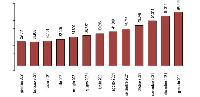 Gennaio 2021-gennaio 2022, milioni di euro in ultimi 12 mesi – Elaborazione Ufficio Studi Confartigianato su dati Istat