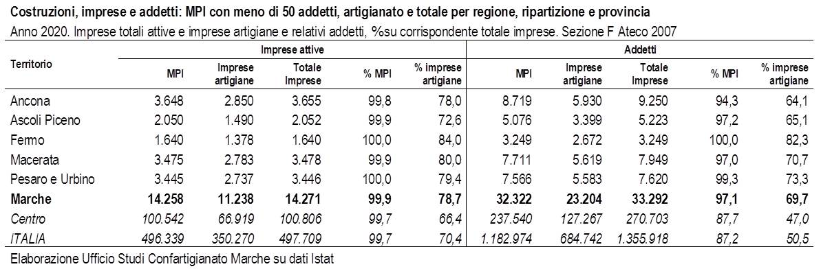 Nelle Marche il 78,7% delle imprese attive delle costruzioni sono artigiane