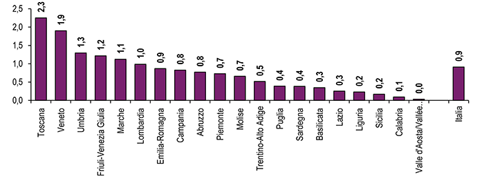 In chiave territoriale, le regioni maggiormente esposte sul mercato americano per vendite di prodotti dei settori di MPI, con valori superiori alla media nazionale, sono la Toscana con un valore dell’export nei settori in esame che è pari al 2,3% del PIL regionale, il Veneto con l’1,9% del PIL, l’Umbria con l’1,3% del PIL, il Friuli-Venezia Giulia con l’1,2% del PIL, le Marche con l’1,1% del PIL e la Lombardia con l’1,0% del PIL.