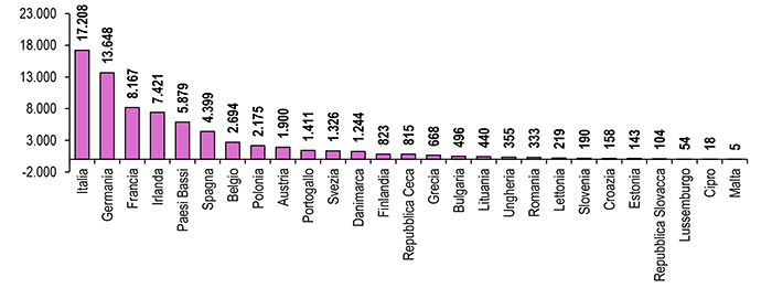 Nel dettaglio, l’Italia è al primo posto tra i 27 paesi dell’Unione europea per esportazioni negli Stati Uniti per i prodotti della moda con 5,1 miliardi di esportazioni – di cui 2,4 miliardi di euro di abbigliamento e 2,7 miliardi di pelli –, per i prodotti alimentari con 4,0 miliardi di euro e di mobili con 1,6 miliardi. Da una analisi di maggiore dettaglio emerge che l’Italia è il primo esportatore europeo negli Stati Uniti sia per la gioielleria con 1,6 miliardi di euro di vendite nel mercato Usa che, nell’ambito delle pelli, per le calzature con 1,4 miliardi di euro.